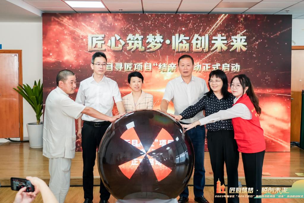 仪式上, “全国学雷锋活动示范点—浙江农林大学‘雷锋班’实践基地”“浙江农林大学文法学院(外国语学院)大学生社会实践基地” 在天目匠心馆正式揭牌。“雷锋班”有5个学生团队分别与杭州工匠提名奖、天目工匠、青柯鸟笼省级非遗代表性传承人江红星等5名工匠达成合作。与会领导及匠人、学生代表共同启动了天目寻匠项目“结亲”活动。