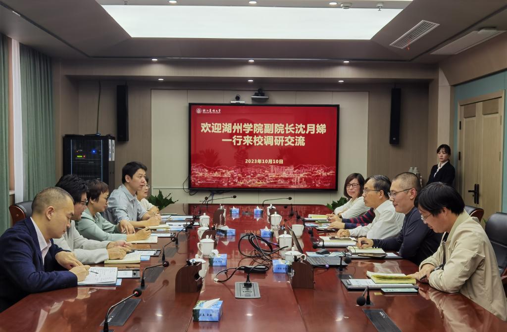 10月10日,湖州学院党委委员、副院长沈月娣一行来我校调研交流。副校长胡祖吉出席座谈会,党委办公室、校长办公室,人事处,经济管理学院,图书馆等部门相关负责人陪同调研。