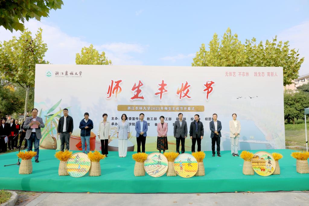 10月22日上午,“无体艺 不农林,践生态 育新人”浙江农林大学2023年师生丰收节开幕式在农作园举行。校党委副书记施美红,校党委委员、宣传部部长倪建均出席开幕式。学校相关职能部门负责人、承办学院师生代表等参加开幕式。