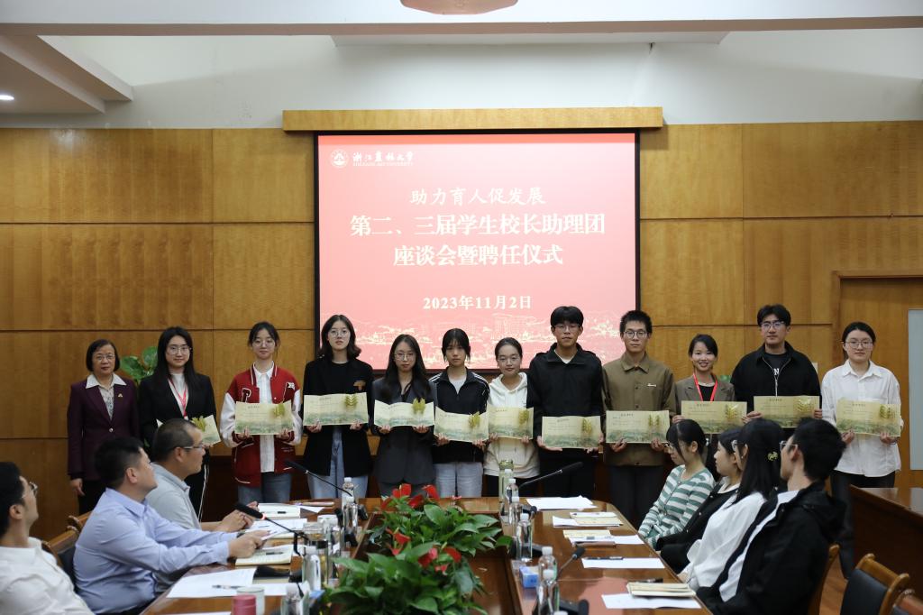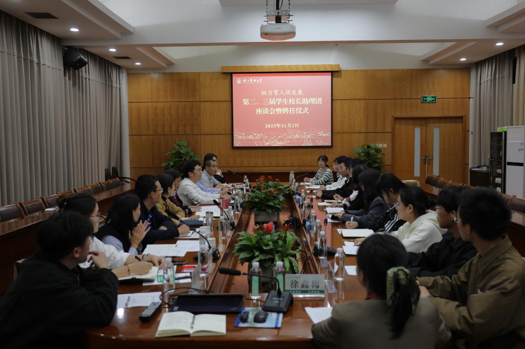 11月2日,第二、三届学生校长助理团座谈会暨聘任仪式召开。副校长沈月琴出席会议并与学生进行了交流,第二、三届学生校长助理团全体成员和相关职能部门负责人参会。