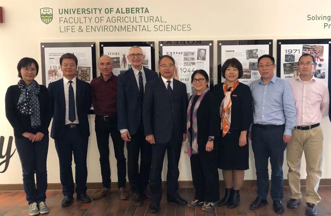 胡祖吉一行访问了阿尔伯塔大学,会见了学校副校长CenHuang教授及农业、生命与环境科学学部相关负责人,双方就进一步推进两校合作,在本科生培养、本硕衔接、学生科研、国家留学基金委项目等方面的合作进行深入探讨。