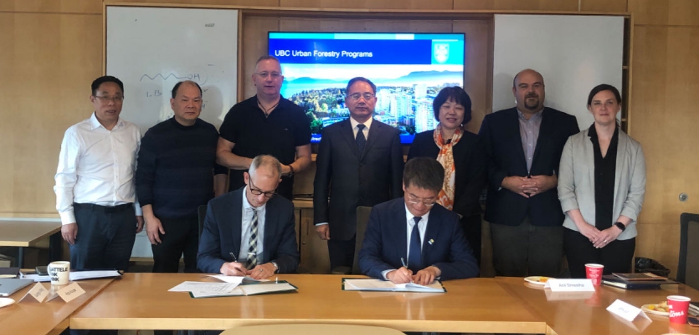 在不列颠哥伦比亚大学,访问团会见了校方代表Cheryl Dumaresq、国际事务负责人及林学学院负责人。我校风景园林与建筑学院与不列颠哥伦比亚大学林学院签署了风景园林与城市林业本科生2+2学分互认协议。两校共建的中加竹子研究院就下一步合作议题进行了讨论。双方就深入开拓其他学科领域的合作进行了交流探讨。