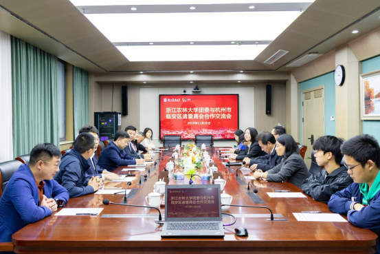 11月10日,校团委与杭州市临安区诸暨商会合作交流会召开。副校长胡祖吉,临安区委统战部副部长、区工商联党组书记楼金山,临安区诸暨商会会长郭益锋出席会议。