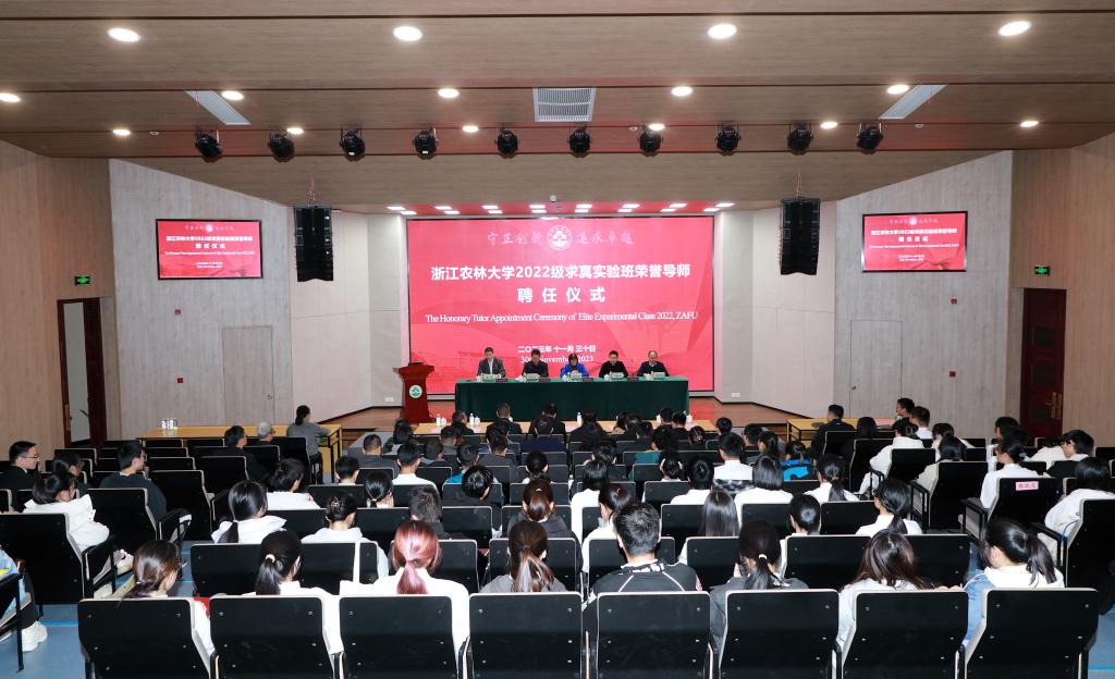 11月30日,2022级求真实验班荣誉导师聘任仪式在学三国际会议厅举行。副校长沈月琴,学生处、研究生院、教务处、集贤学院负责人出席。