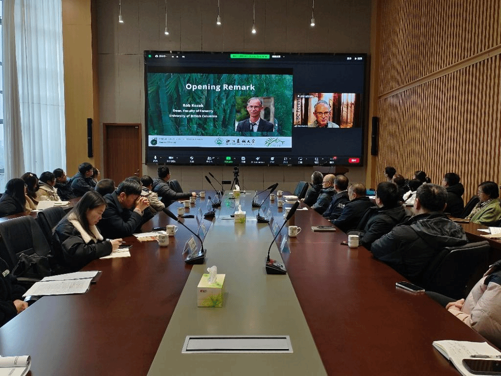 Robert Kozak教授介绍了UBC林学院的概况和林业研究动态。他指出科学研究应该通过解决生物多样性保护、环境正义、减缓气候变化、可持续森林管理、城市林业和生物产品开发等问题,努力重新定义和拓宽我们的林业概念。UBC对未来国际合作充满信心,并期待UBC-ZAFU两校今后展开进一步的深化合作。