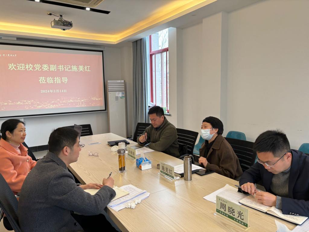 学工部相关负责人汇报了我校学生心理健康的基本情况,表示将为学生全面成长成才提供更加优质的心理支持服务,助推学校冲击“双一流”,为建设区域特色鲜明的高水平生态性研究型大学做好心理安全保障。