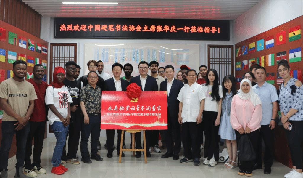 活动现场还举行了“永远听党话 笔墨润万家”浙江农林大学国教学院党建志愿者服务站揭牌仪式。中国硬笔书法协会将携手临安分会,与国教学院合作加强党建共建,为进一步提高来华留学生讲好中国故事的能力作出共同努力。