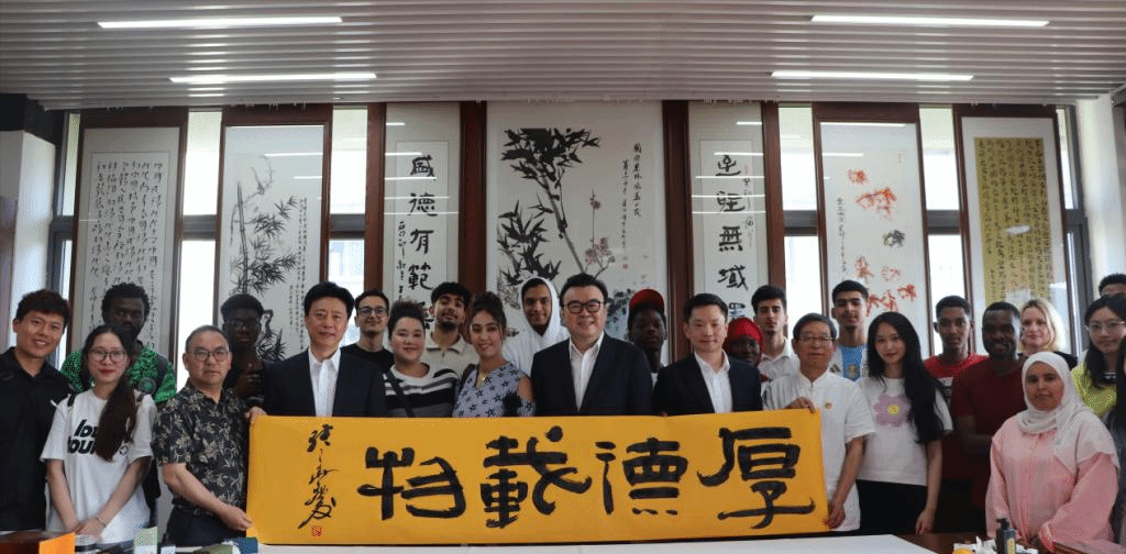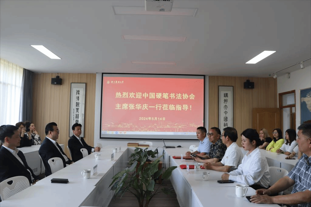 5月14日下午,中国硬笔书法协会主席张华庆受邀来校,助力我校国际生国情教育名师工作室“感知中国大书法艺术”文化交流活动。副校长吴家胜,中国硬笔书法协会党支部书记李冰、执行秘书长梁秀,临安区硬笔书协名誉主席余成云、主席张世文、副主席叶伟芳等应邀参加活动。来自斯洛伐克、越南、印度尼西亚、摩洛哥、赞比亚、津巴布韦等国近50位留学生代表参加。