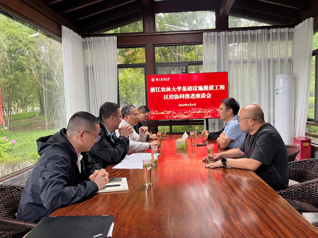 胡祖吉介绍了我校基础设施提质工程项目及推进情况,特别是作为基础设施提质工程第一批省属高校急迫优先项目的建设情况,包括在建的新农科教育教学建设工程、报批新建的D区学生宿舍建设工程、体育中心建设工程、H区学生宿舍建设工程、衣锦校区东西大楼拆建工程和衣锦校区宿舍楼拆建工程等。胡祖吉同时对临安区相关部门负责人长期以来关心支持学校发展表示衷心感谢。