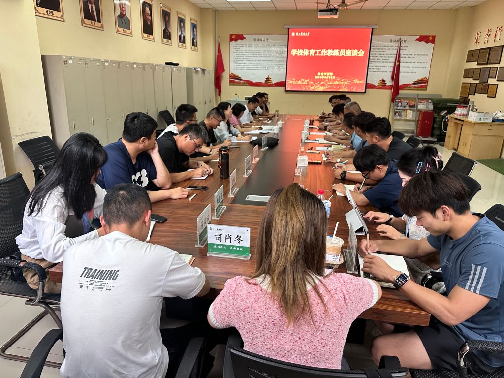 6月19日,我校体育工作教练员座谈会在东湖校区风雨操场会议室举行,副校长沈月琴出席座谈会,教务处负责人,体军部党政领导班子成员、竞训中心主任和全体教练员参加座谈。