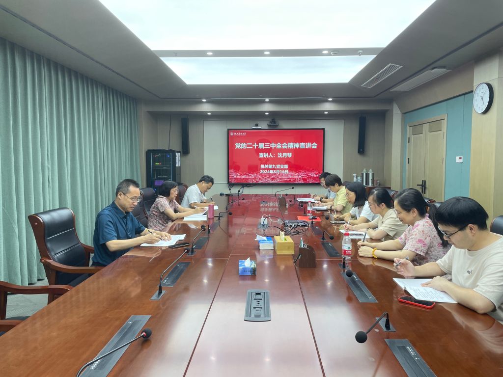 8月16日,副校长沈月琴面向机关第九党支部宣讲党的二十届三中全会精神,教务处、质控中心、教发中心全体党员同志参加学习。