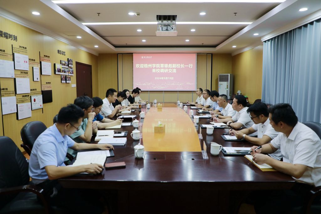 9月19日,梧州学院副校长覃雄彪带队来校调研。我校副校长徐爱俊出席座谈会。