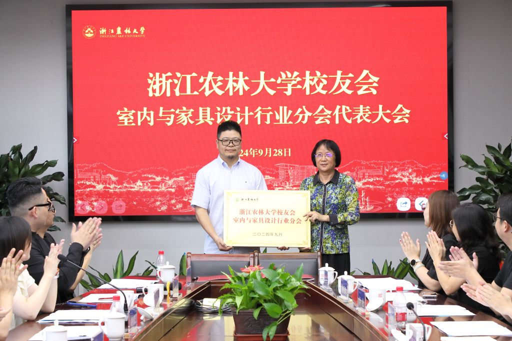 化材学院家具设计与工程专业的教师杨俊辉、胡孙跃分别汇报了室内与家具设计行业校友分会成立情况和“校友之家暨智能家具实验室”的建设情况。