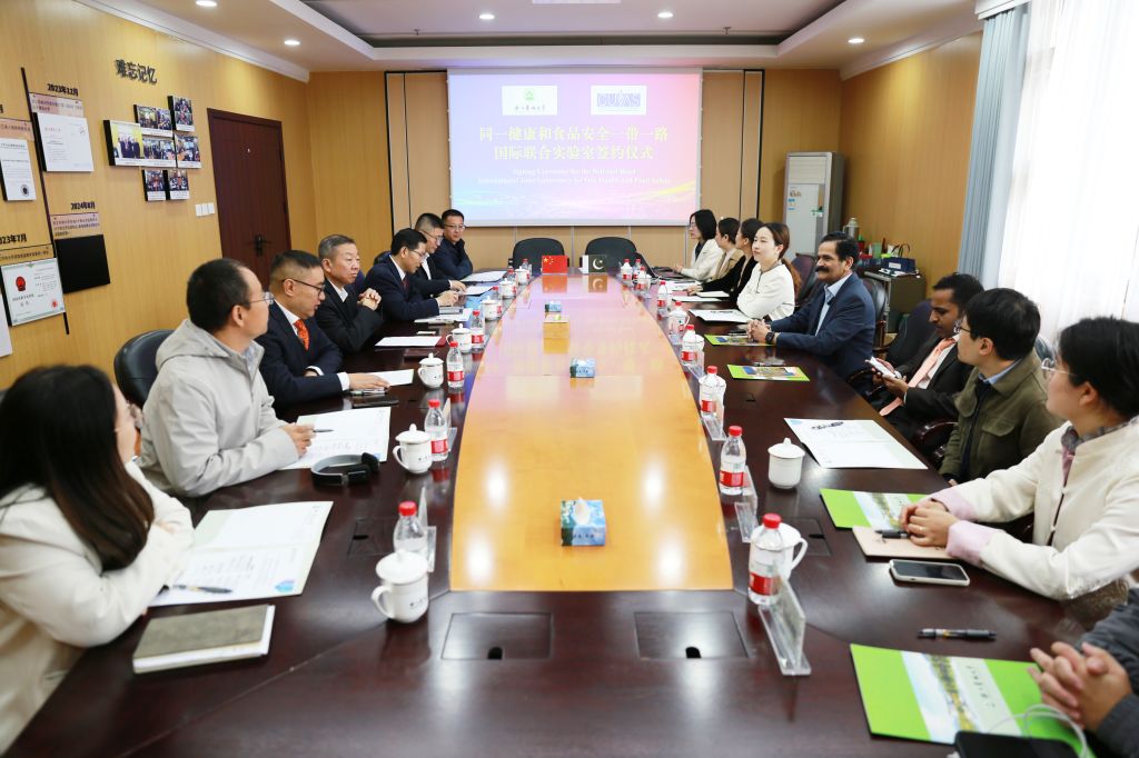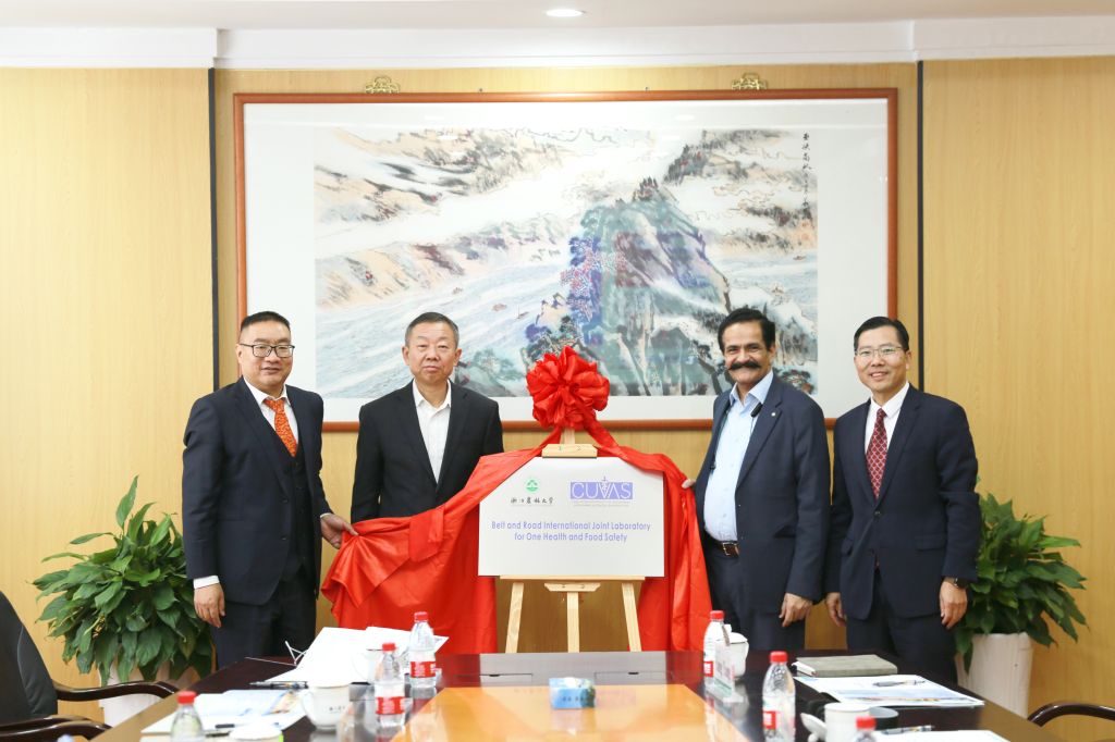 11月6日,浙江农林大学与巴基斯坦乔里斯坦畜牧兽医大学举行同一健康和食品安全一带一路国际联合实验室签约揭牌仪式,乔里斯坦畜牧兽医大学校长穆罕默德·马扎尔·阿亚兹,助理教授穆罕默德·赛义德;浙江农林大学副校长吴家胜,校党委委员、动科动医学院院长、中国兽医协会动物福利分会会长宋厚辉出席仪式并讲话。国际处负责人、动科动医学院相关教师参加仪式。