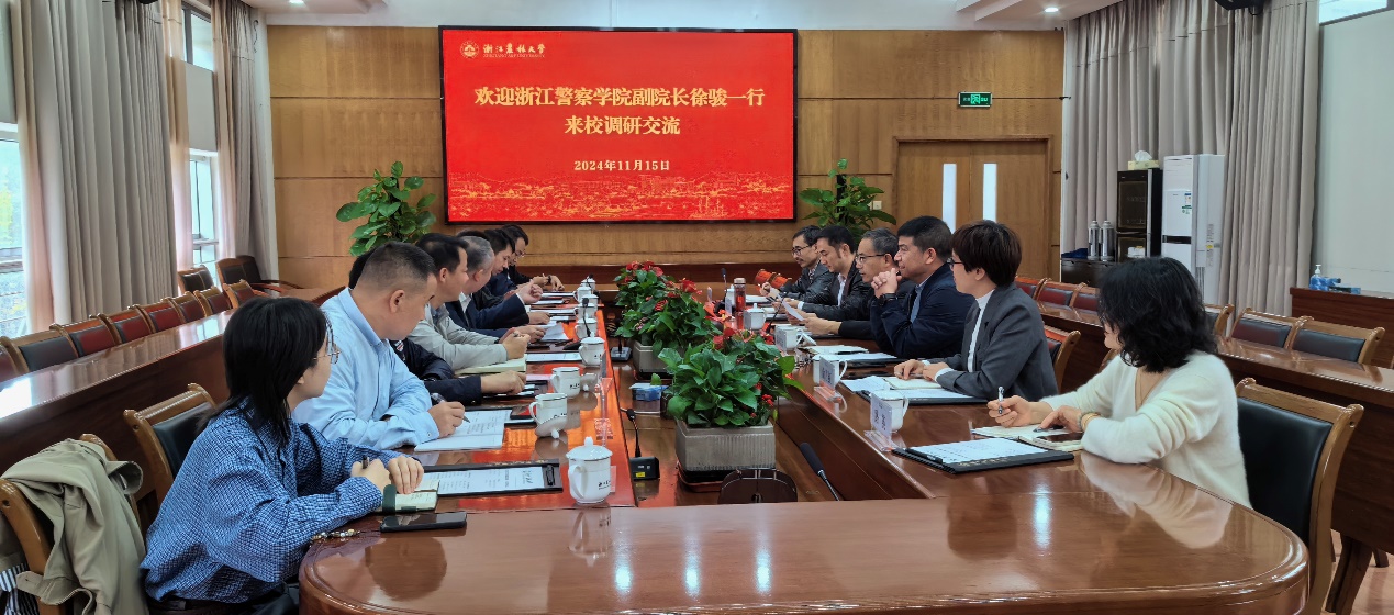 11月15日,浙江警察学院副院长徐骏一行来校调研交流,副校长胡祖吉陪同调研并主持座谈会。