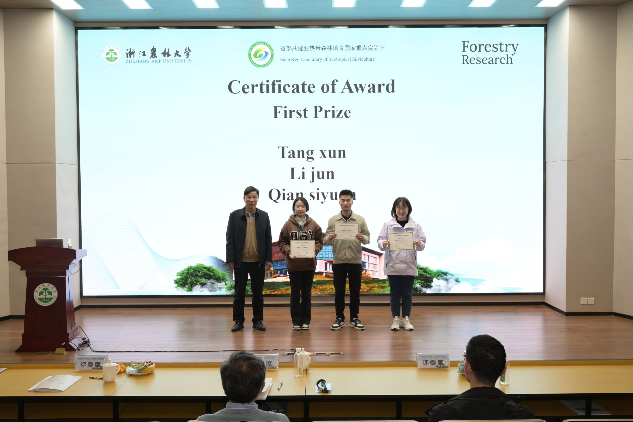 在研究生论坛环节,来自我校以及国内三十余所兄弟高校和科研院所的45名硕博士研究生,就自己的科研成果,所取得的新进展和新思路,进行了分享和交流。经论坛评委会专家评审,为表现优秀的同学颁发获奖证书。