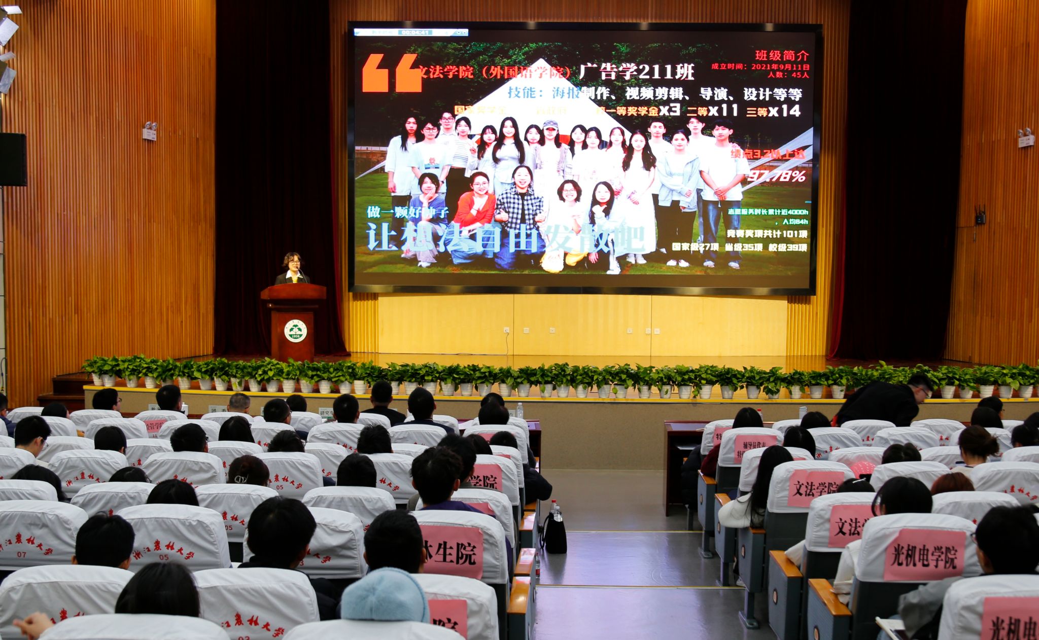 来自16个学院的优秀本科、研究生候选班级通过精美的PPT展示和精彩纷呈的汇报演讲,以详实的数据、丰富的案例,向大家介绍了自己班级整体概况、专业学习成绩、学风建设行动、学科竞赛成果以及文体活动等方面的突出表现和先进荣誉,展现了班级在学风建设方面付出的努力和取得的成果,充分体现了积极上进的学习风气、团结和谐的班级凝聚力,以及德智体美劳全面发展的精神风貌。