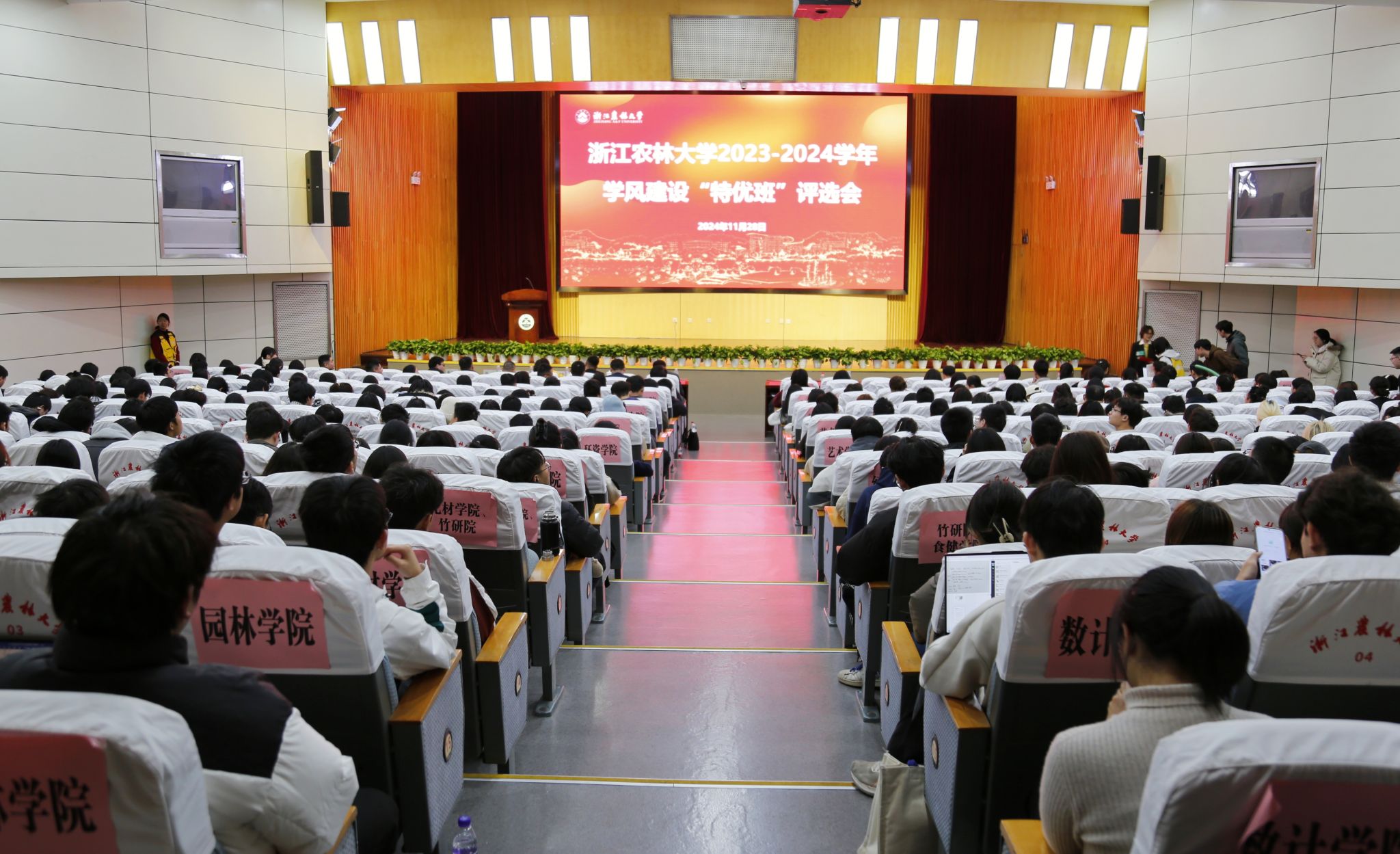 11月28日,2023-2024学年“学风建设特优班”评选会在东湖校区图书馆第一报告厅举行。校党委副书记倪建均,学生处、研究生院、教务处、质控中心、团委等部门负责人,各学院学生工作负责人,辅导员、班主任和学生代表等500余人参加评选会。