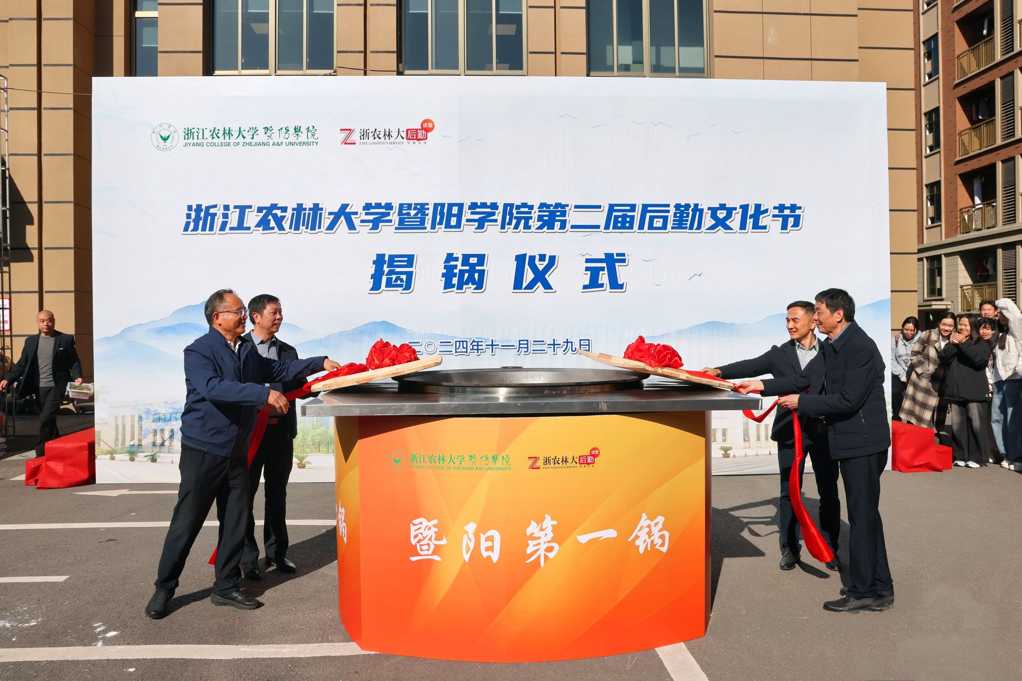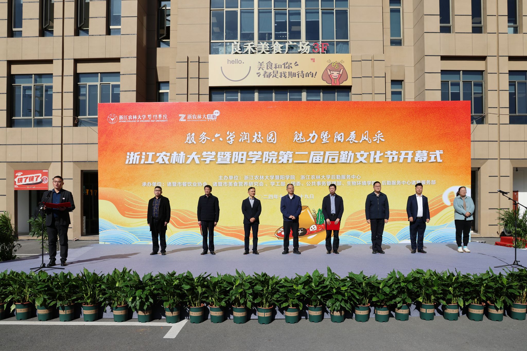 11月29日,浙江农林大学暨阳学院第二届后勤文化节开幕式在暨阳学院二食堂广场举行。副校长胡祖吉出席开幕式,暨阳学院、后勤中心负责人,诸暨市餐饮业协会会长斯华民等参加开幕式。