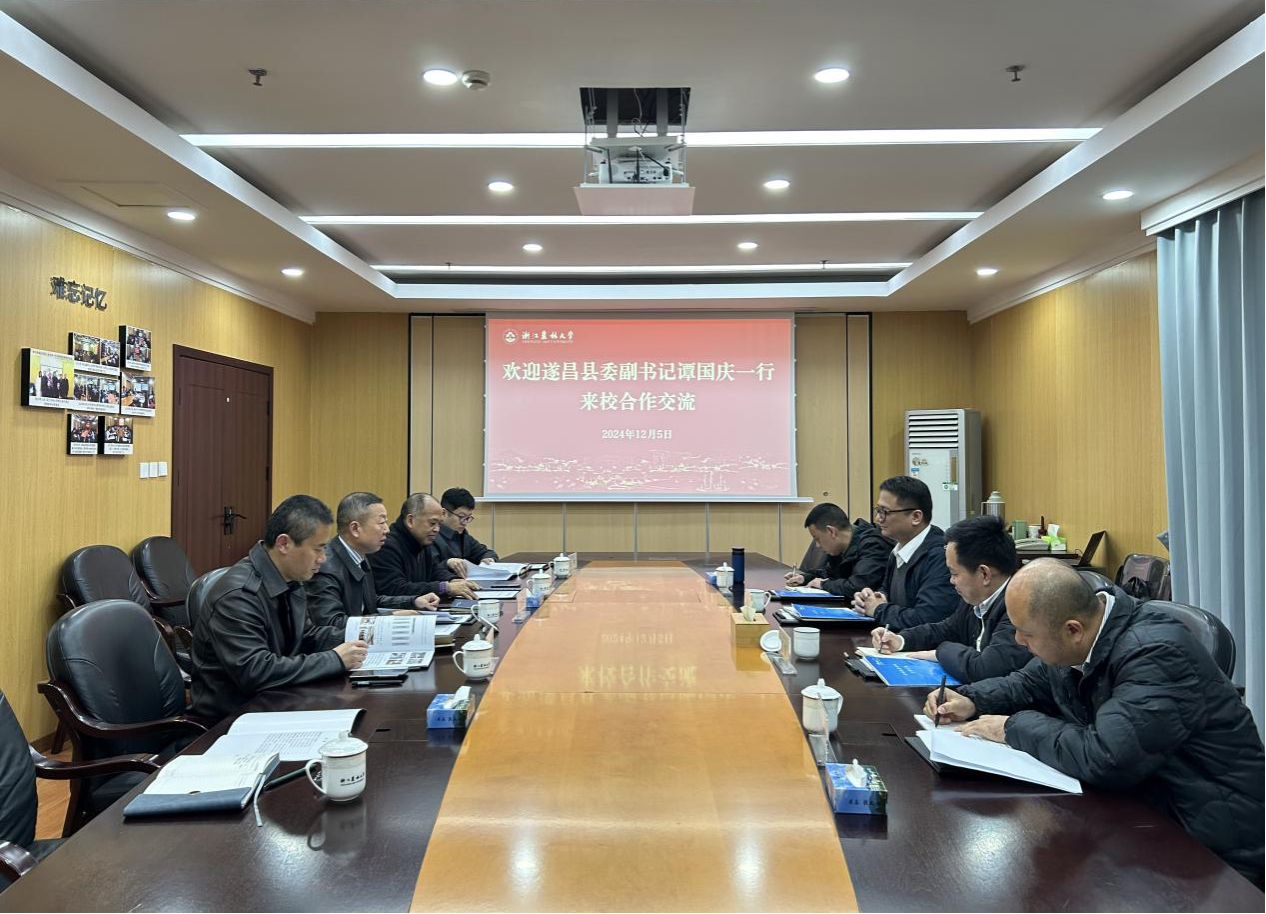 12月5日,遂昌县委副书记、政法委书记谭国庆,副县长王庆一行来校交流。副校长吴家胜,浙江省特级专家、省部共建亚热带森林培育国家重点实验室副主任黄坚钦出席座谈。