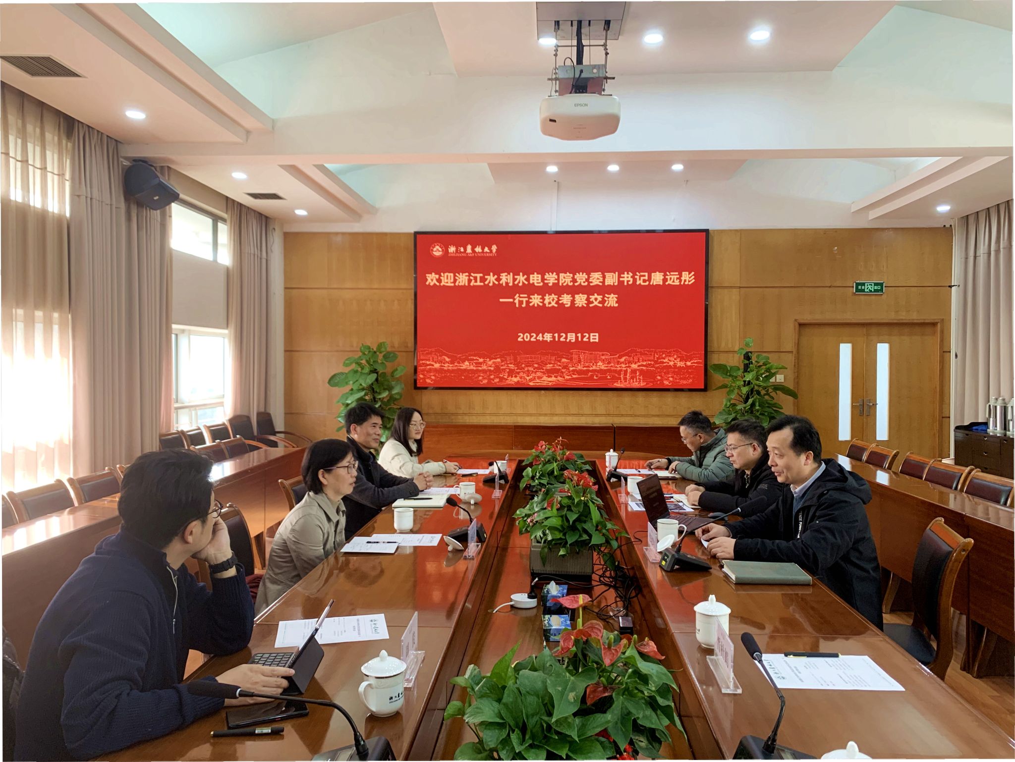 12月12日,浙江水利水电学院党委副书记唐远彤一行来校调研。我校党委副书记倪建均陪同调研并主持座谈会,宣传部、教工部、新闻中心负责人参加座谈交流。