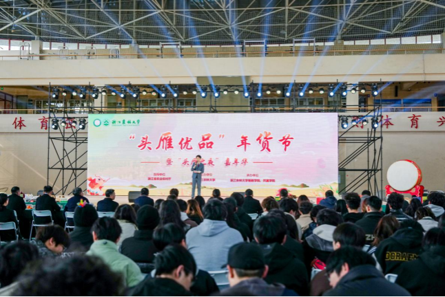 12月27日-28日,2024“头雁优品”年货节暨 “头雁之夜”嘉年华活动在我校东湖校区体育馆举行。来自新疆、浙江、江西等地的128家“头雁”企业和“农创客”们带来了500余种特色农副产品,并同时推出系列由我校教师团队自主研发的科技成果。