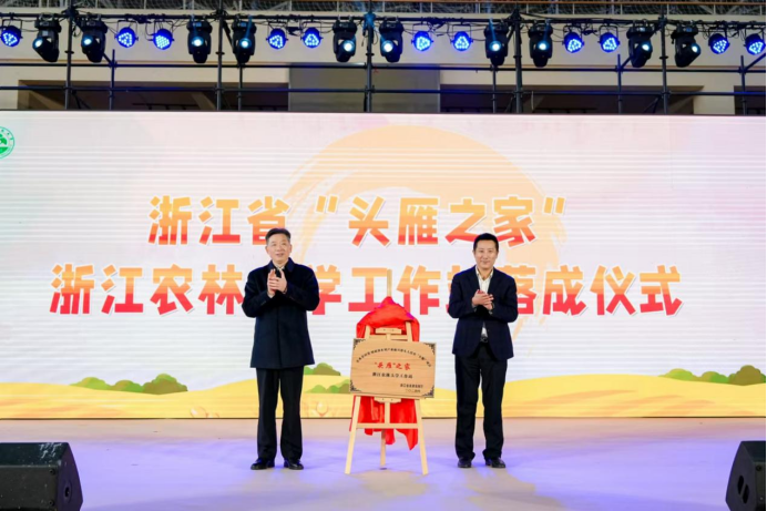 开幕式上,穿越时空的“美食家”--北宋文豪“苏东坡”重游临安,并带来精彩的“头雁兴农梦”舞台剧,用古今结合的方式生动展现了乡村蝶变的壮丽画卷。由我校“头雁”“乡村CEO”学员们发起的“兴农基金”正式成立,并举行了现场捐赠仪式。浙江省“头雁之家”浙江农林大学工作站落成仪式举行,并对11个地市区“头雁之家”工作分站进行了授牌。2024年浙江“千万工程”讲解员比武大赛一等奖获得者方泳还进行案例分享,讲述了他在“新宇村”的致富之路,赢得了现场观众的阵阵掌声。