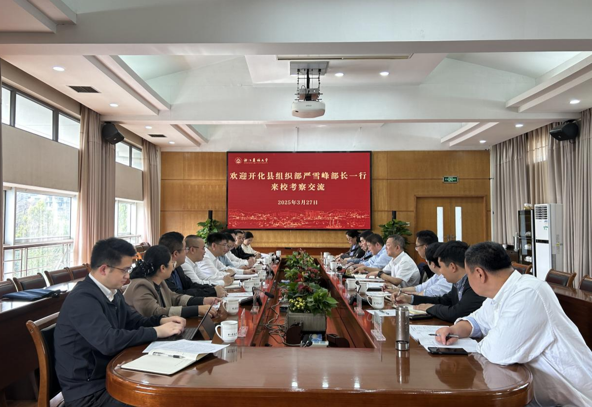 3月27日,开化县委组织部部长严雪峰一行来校考察交流。副校长吴家胜出席座谈会。