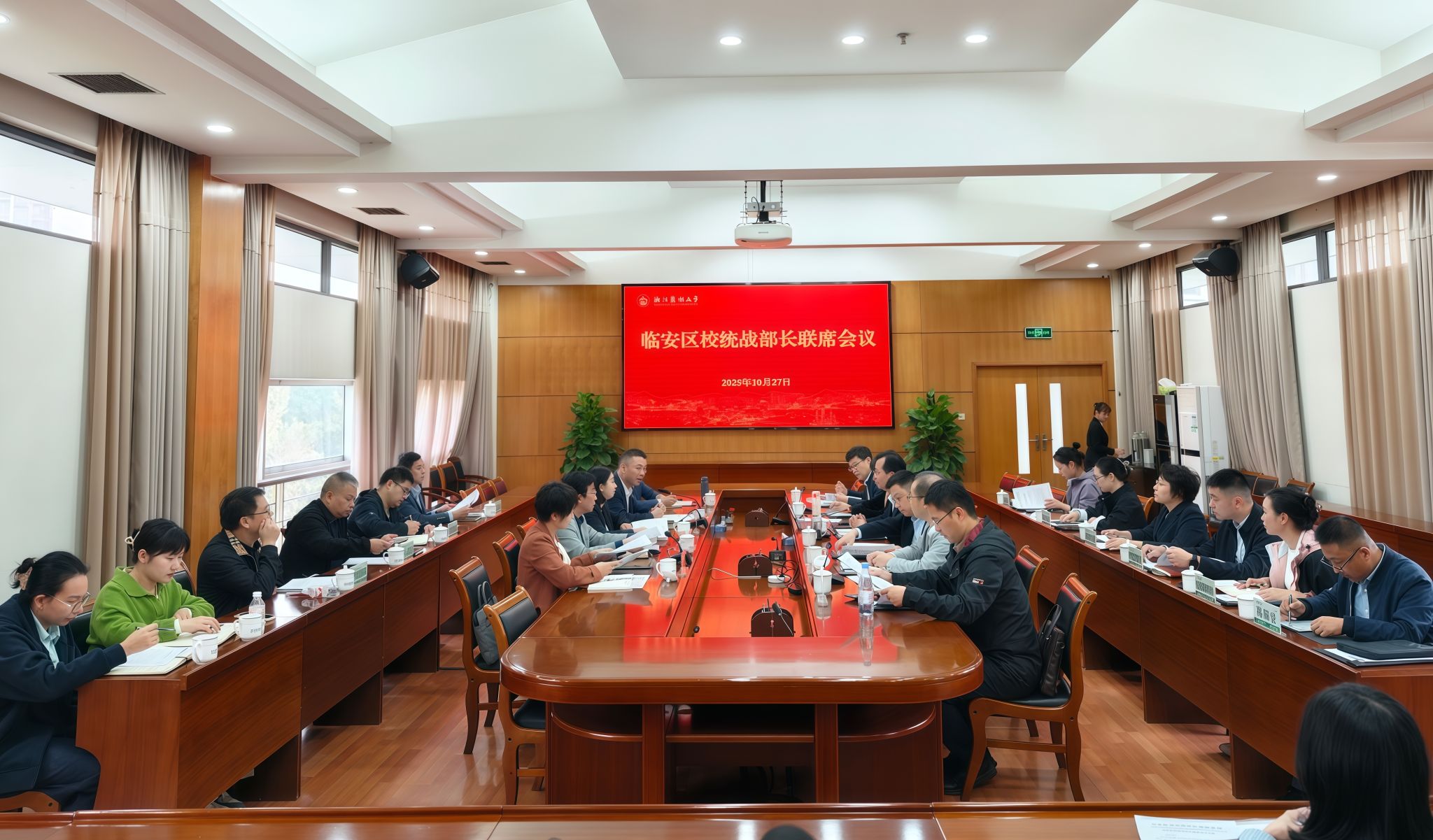 10月27日,临安区校统战部长联席会议在我校召开。学校党委副书记、统战部部长倪建均,临安区委常委、统战部部长陈娜出席会议。临安区委统战部、区侨办、区民宗局、团区委相关负责人,浙江农林大学、杭州医学院、浙江警察学院、杭州电子科技大学信息工程学院、浙江公路技师学院等5所高校统战部门负责人、团委书记参加。会议由临安区委统战部常务副部长黄浙挺主持。