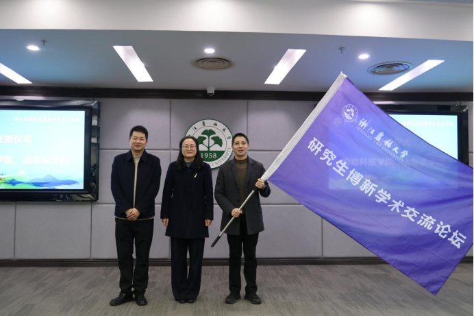 闭幕式上,相关职能部门及学院负责人为获奖个人和团队进行了颁奖表彰,获奖选手代表发表获奖感言,现场还举行了论坛会旗交接仪式,第八届研究生博新学术交流论坛将由动物科技学院、动物医学院承办。