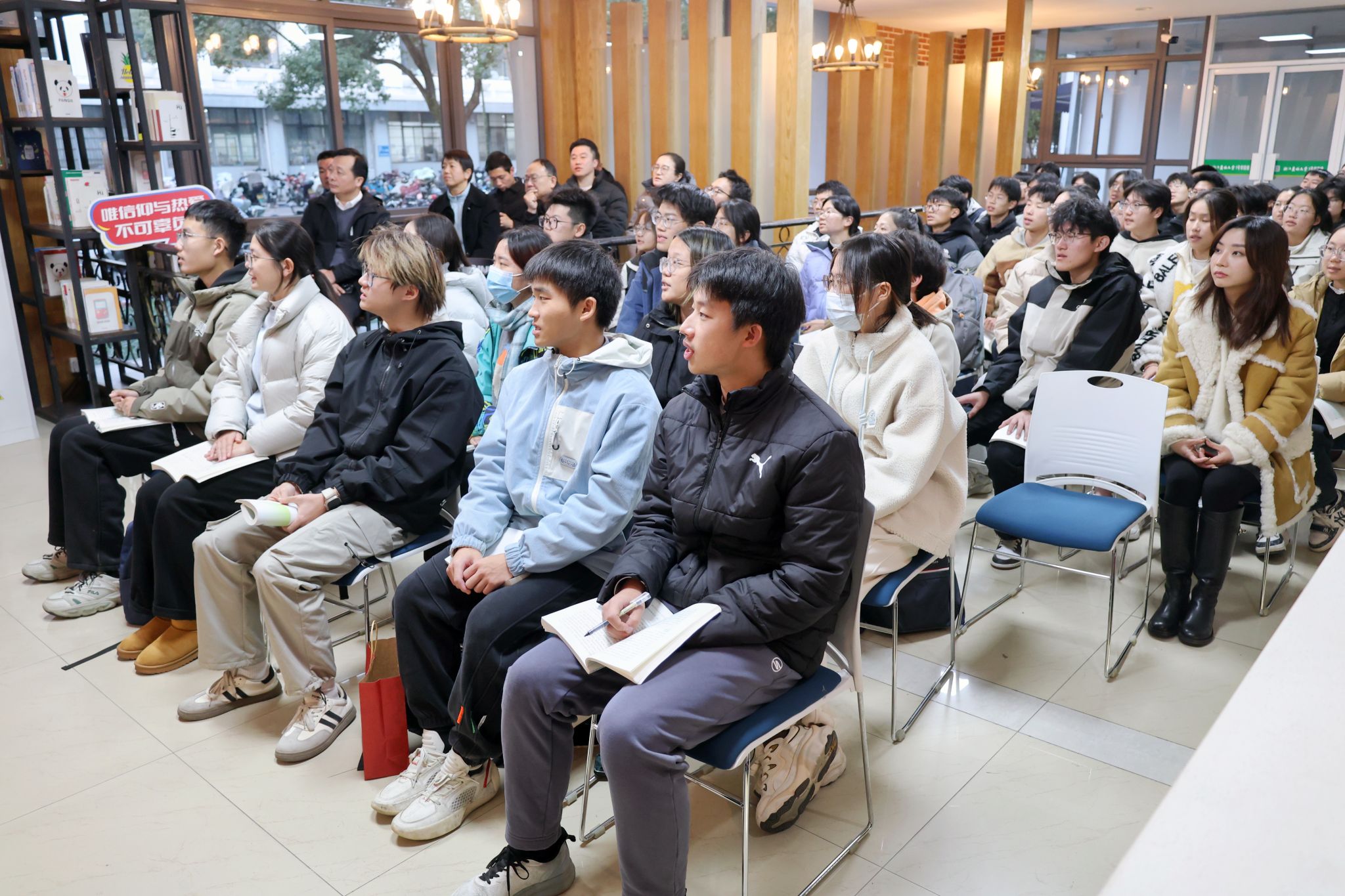 “理想信念之火一经点燃,就会产生巨大的精神力量。”课程接近尾声时,作为宣讲人的包林帆老师这样总结,“从为什么能,再到怎么做,答案其实很简单——心中有信仰,脚下有力量。”