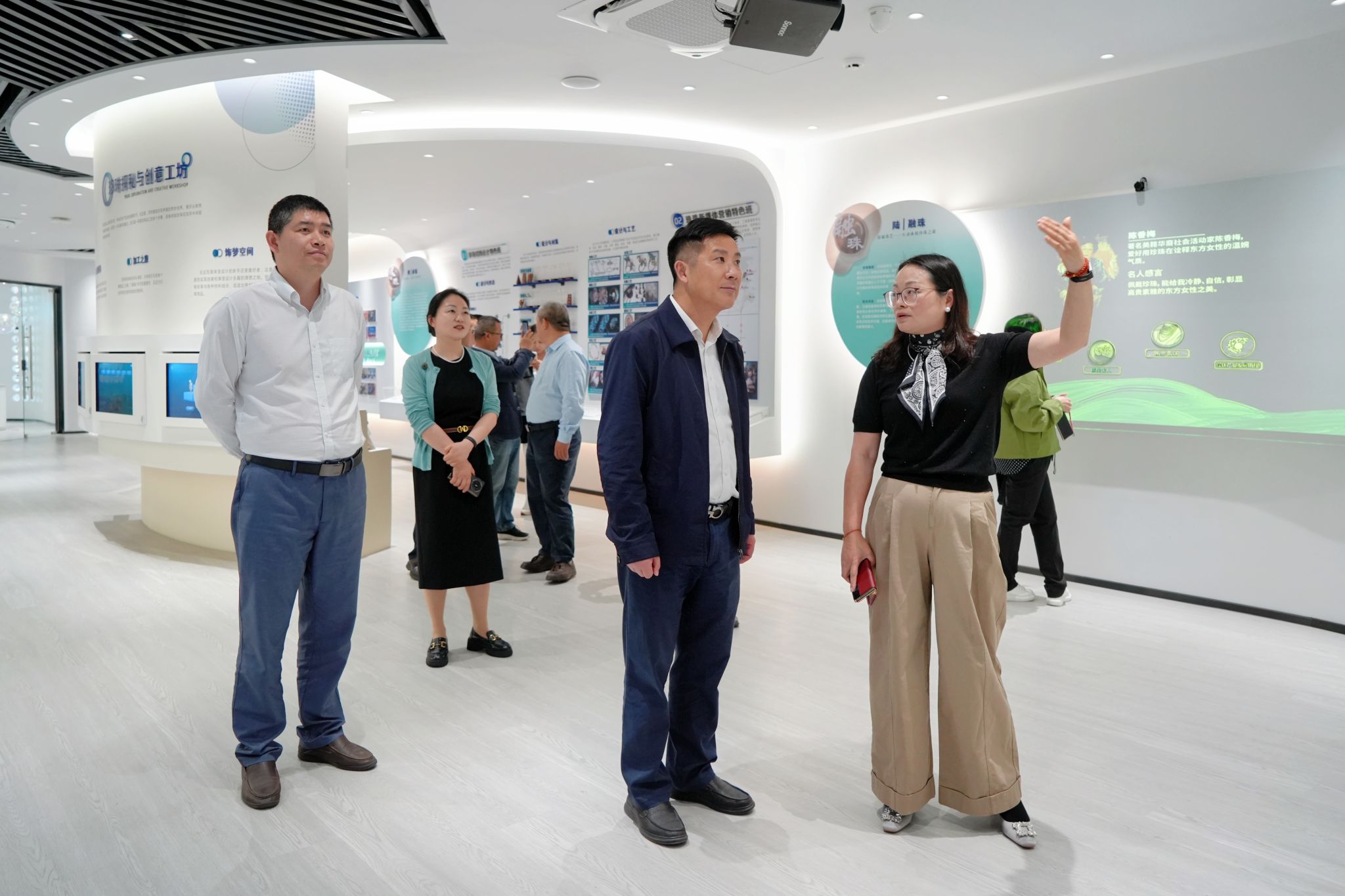 调研期间,徐爱俊一行实地考察了中国珍珠学院、人工智能产业学院,深入了解两个产业学院在建设特色、人才培养模式、产教融合落地成效等方面的具体举措以及未来建设规划。