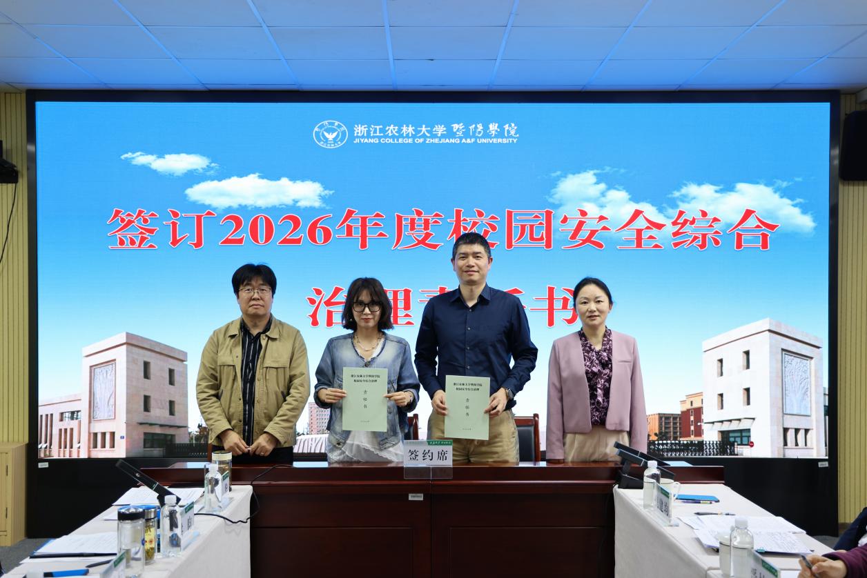 暨阳学院汇报2025年校园安全综合治理工作情况,就2026年校园安全相关工作和创建5A级平安校园工作方案进行了部署。会议还举行了意识形态责任书和校园安全综合治理责任书签订仪式。