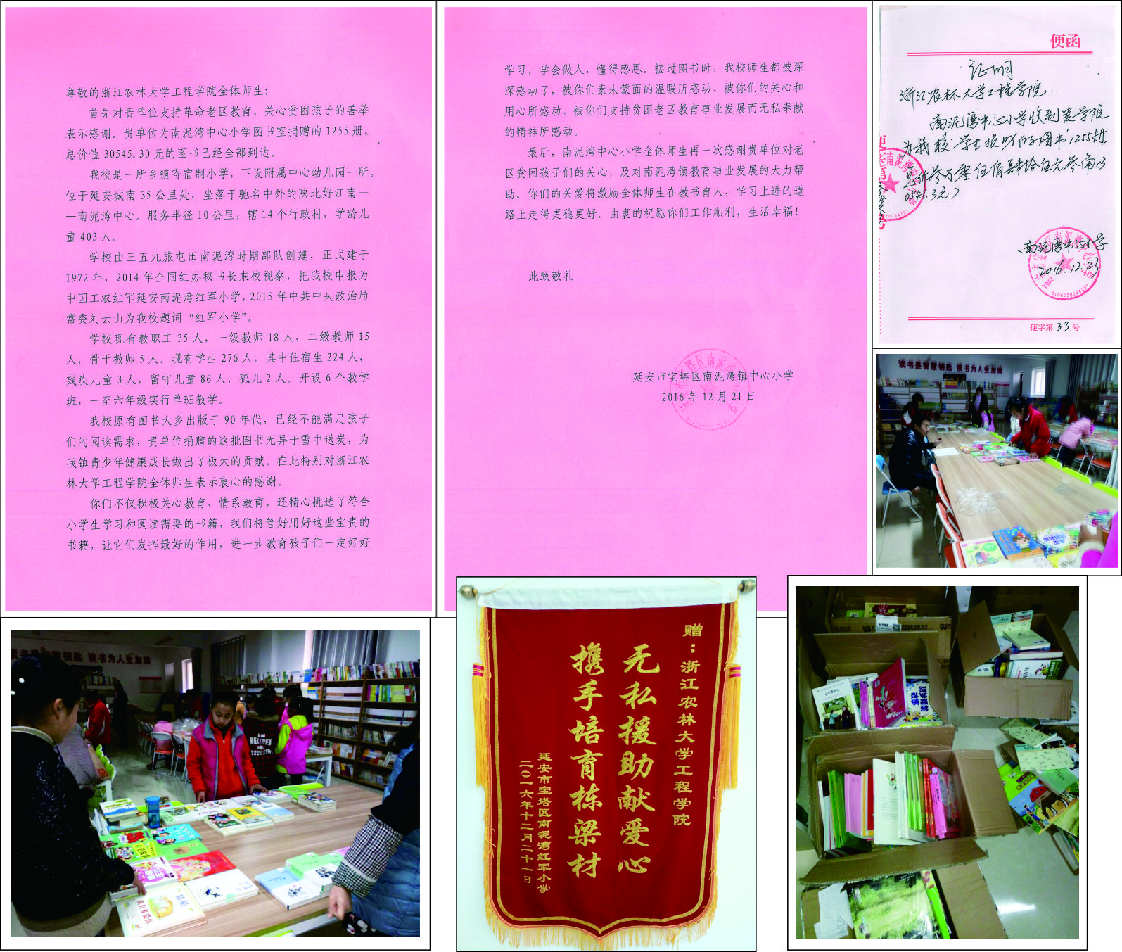 这份感谢信起因于工程学院党委得知南泥湾红军小学条件有限,图书资源一直比较匮乏后,立即开展了“为南泥湾红军小学捐款购书”活动。倡议一发出,学院所有党支部和团支部积极行动,党员带头,很多非党员教工和团员学生也踊跃参加。全院1783人主动捐款,共筹得购书款3万余元,购买适合小学生阅读的图书1255册,全部捐赠给南泥湾红军小学,用于丰富该校学生的课余生活,大大改善了该校藏书老旧匮乏的现状。