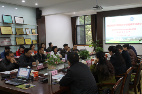 11月19日,由教育部全国高校农业经济管理类专业教学指导委员会、浙江农林大学主办,经济管理学院承办的“全国高校《计量经济学》课程建设研讨会”在我校衣锦校区经济管理学院会议室召开。来自南京农业大学、华中农业大学、华南农业大学、四川农业大学、安徽大学、安徽农业大学、东北林业大学、西南林业大学、内蒙古农业大学、河北农业大学、吉林农业大学等共12所国内高校从事《计量经济学》本科课程教学任务的23位专家学者受邀参加了本次会议。