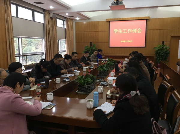 11月23日,学校在行政楼第一会议室召开学生工作例会。会议由校党委副书记史永安主持,宣传部、学工部、保卫处、校团委负责人,各学院分管学生工作负责人参加会议。