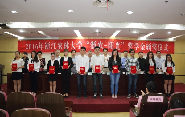 6月2日下午,学校2016年“浙农-阳光”奖学金颁奖仪式在图书馆第二报告厅举行。副校长王自勇,学生处、浙江农资集团有限公司负责人出席颁奖仪式。学生处、研究生处相关负责人、相关学院分管学生工作负责人、辅导员和获奖学生代表近200人参会。