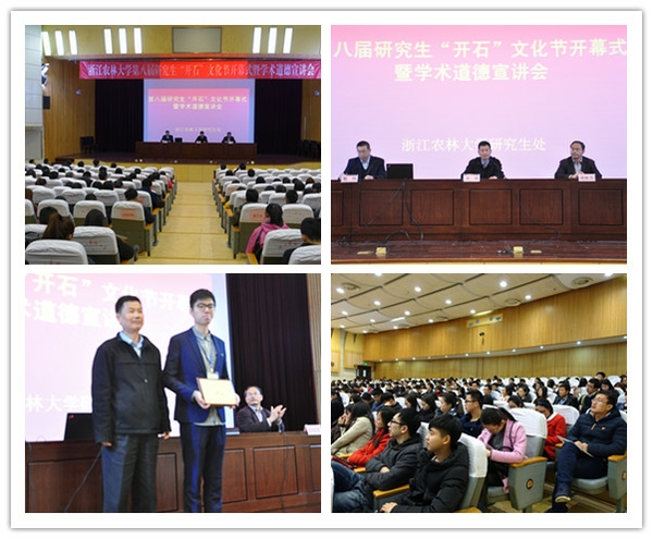 沈希肯定了“开石”文化节举办七届以来取得的成绩,强调了弘扬校园学术文化的重要性,并对文化节提出了三点要求:一是要全力搭建好学术交流平台,以文化节为契机加强师生之间、导学团队之间以及相近学科之间的学术交流;二是要充分发挥研究生导师的学术示范和学业指导职能,提升学术交流活动的层次和效果;三是要进一步扩大活动影响,尝试与国内农林院校和省内高校的相关学科联合开展学术交流活动,进一步扩大活动的参与面和影响力。沈希为获得“浙江省优秀学生会”荣誉称号的校研究生会表彰授牌。