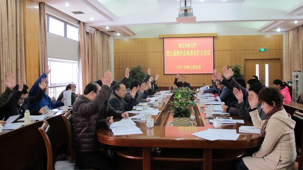 会议听取了“双代会”筹备情况、九届一次教代会提案办理情况;相关职能部门解读了《关于学校部分楼宇等命名的建议方案》、《浙江农林大学师生生态文明行为规范》和《浙江农林大学“十三五”规划纲要》等制定情况;会议通过了“双代会”会议安排草案和调整后的主席团成员和秘书长建议名单。