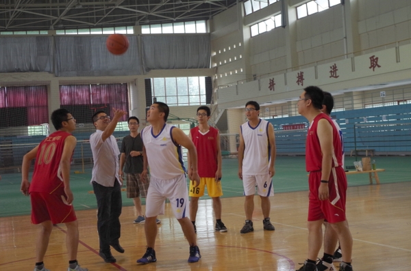 在进行短暂的热身后,篮球对抗赛正式开始。双方队员迅速进入状态,在团队的良好交流和默契配合下,双方开展一轮又一轮激励的投球。在第二轮的比赛中,学工队和后勤队进行季军的争夺,决赛由教工队和行政队角逐冠亚军,最终教工青年队绝对优势成为本次青年教职工篮球对抗赛的冠军。