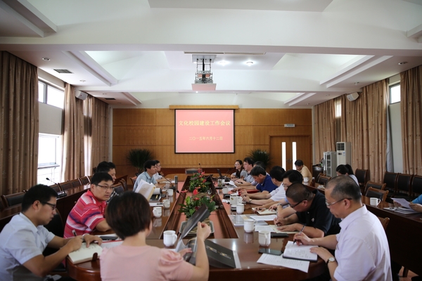 6月12日下午,学校在行政楼第一会议室召开文化校园建设工作会议。会议由校党委委员、宣传部部长、文化校园建设领导小组办公室主任陈永富主持,领导小组办公室成员、文化校园建设相关项目负责人参加了会议。