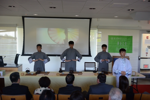 最后,“浙茶之美”茶文化巡礼团给假期期间从各地赶回学校观赏中华茶艺的纽黑文大学的师生们进行了精彩的茶文化艺术呈现,竹茶会、儒家茶礼和道家茶礼一一登场。现场的观众对如此丰富而独特的呈现方式表示赞叹和期待。来自中国和新加坡的留学生表示:自己平时也有饮茶的习惯,并很喜欢这样的呈现方式,同时也祝福中国茶文化的精髓得以传承和发扬。