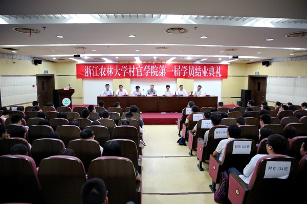 王长金和缪鲁加分别宣读了《浙江农林大学村官学院关于授予金纬等168名同学结业证书的决定》、《浙江农林大学村官学院关于表彰第一届优秀学员的决定》。主席台就坐领导为第一届学员代表颁发结业证书和院徽,为第一届优秀学员颁发荣誉证书。