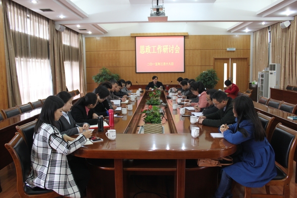 3月18日下午,学校在行政楼第一会议室召开新学期思政工作研讨会,会议由校党委委员、宣传部部长陈永富主持,宣传部、学工部、研工部、校团委负责人,各学院分管学生工作负责人参加会议。