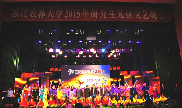 校长周国模,校党委副书记方伟、余杰,副校长王自勇、张立钦、鲍滨福以及部分机关职能部门领导、学院党政领导和研究生导师们出席了晚会。晚会还邀请到浙江中医药大学研工部的领导和研究生代表,浙江财经大学、浙江理工大学的研究生代表到场,与千余名师生欢聚一堂,共贺新年。