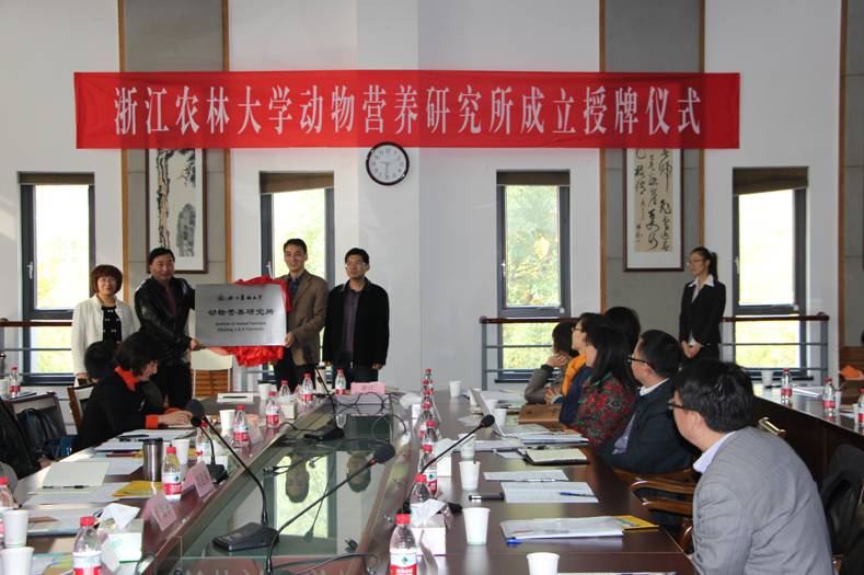 科技处相关负责人就我校动物营养研究所成立的有关情况进行了介绍,随后进行了“浙江农林大学动物营养研究所”授牌仪式,金佩华为动物营养研究所授牌。