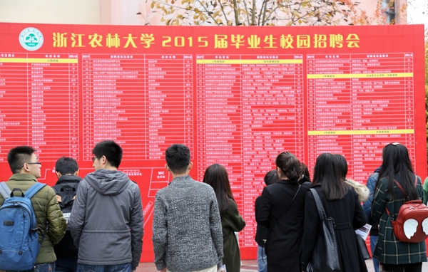 11月28日,由浙江省高校毕业生就业指导服务中心、我校学生处就业指导服务中心主办,工程学院、经管学院、马法学院、外语学院联合承办的首场2015届毕业生校园招聘会在东湖校区活动中心举行。招聘会吸引150余家单位参加,提供就业岗位2000余个,涉及工业设计、外贸销售、培训教师、行政助理等多个领域。