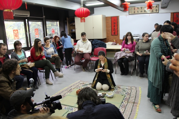 在诺维萨德大学孔子学院,我校访欧代表团为当地的师生呈现了《茶艺红楼梦》、潮州功夫茶等茶艺。大家席地而坐,品茗谈心其乐融融;在罗兰大学孔子学院,访欧代表团受邀为正在参加培训的中东欧八十余位中外汉语教师开展了茶文化的讲学和呈现;在格拉茨大学孔子学院,二十余位教授和老师现场聆听了王旭烽教授的讲课,从人文科学和自然科学的双重角度学习和体验了中华茶文化。