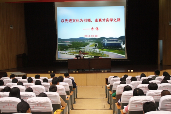 10月10日,校党委副书记方伟教授应邀走进研究生“开石文化”讲坛,为我校2014级500名研究生作了题为“以先进文化为引领,走真才实学之路”的报告。