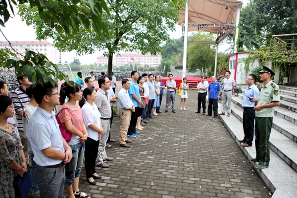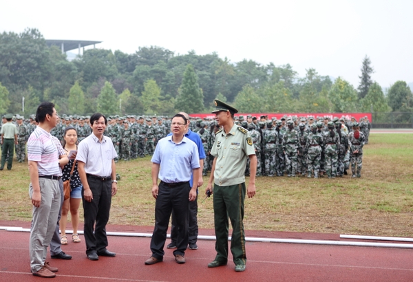9月15日上午,校党委副书记、军训师政委余杰来到东湖校区军训场地,看望慰问2014级全体军训官兵。校党委委员、宣传部部长、军训师副政委陈永富,体军部主任、军训师副政委汪和生,学工部部长、军训师副政委缪鲁加,后勤集团党总支书记、军训师副政委钱杭园陪同慰问。